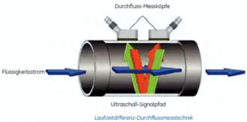 Modernste Messfunktionalität speziell für Wasser und Abwasser.Der AT600 für Flüssigkeiten kombiniert modernste Durchflussmesstechnik mit einem kostengünstigen Messkopf-Paket, welches direkt am Prozessmesspunkt installiert werden kann. Er ist speziell für Wasser- und Abwasser-Anwendungen in voll gefüllten Rohrleitungen ausgelegt. Der volldigitale AT600 hat keine beweglichen Teile und benötigt nur minimale Wartung.Ein eingebauter Mikroprozessor verwendet eine patentierte Korrelations-Laufzeitdifferenz-Technologie für langfristigen, driftfreien Betrieb. Eine automatische Anpassung an sich verändernden Mediumseigenschaften und eine dynamisch konfigurierte Betriebssoftware vereinfachen die Programmierung.Laufzeitdifferenz-DurchflussmessungIn diesem Verfahren werden zwei Messköpfe sowohl als Ultraschall-signalsender als auch als Empfänger eingesetzt. Die Verbindung erfolgt über codierte Ultraschallsignale, was bedeutet, dass der zweite Messkopf Ultraschallsignale empfangen kann, die vom ersten Messkopf gesendet wurden und umgekehrt.Im Betrieb funktioniert jeder Messkopf als Sender und erzeugt eine Reihe von akustischen Impulsen, und dann als Empfänger für eine identische Anzahl von Impulsen. Das Zeitintervall zwischen Übertragung und Empfang der Ultraschallsignale wird in beiden Richtungen gemessen. Wenn die Flüssigkeit im Rohr nicht fließt , ist die Laufzeit stromabwärts gleich der Laufzeit stromaufwärts. Wenn die Flüssigkeit zu fließen beginnt , ist die Laufzeit stromabwärts kleiner als die Laufzeit stromaufwärts.Die Differenz zwischen den Laufzeiten stromabwärts und stromaufwärts ist proportional zu der Geschwindigkeit der strömenden Flüssigkeit und zeigt über das Vorzeichen die Durchflussrichtung an.